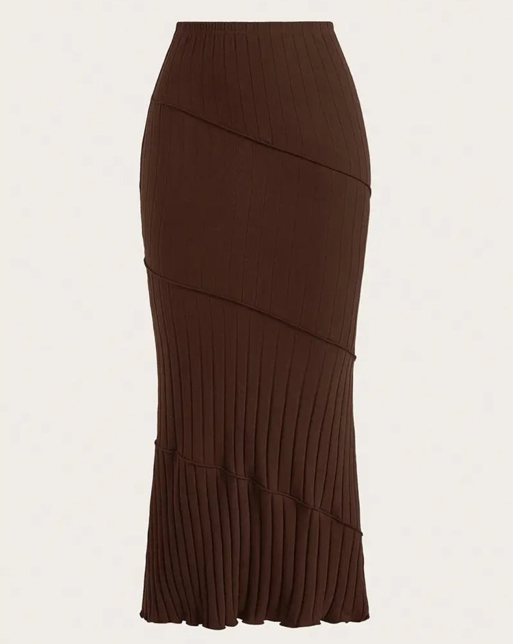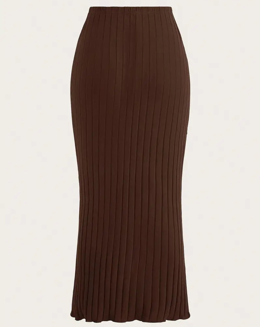 🤎 Coffee Knit Rib Skirt – Elegantti ribbineulottu midihame
