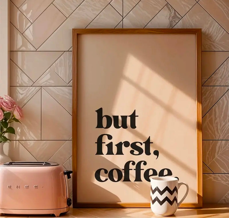 Minimalistinen ja moderni seinäjuliste, joka sopii täydellisesti keittiöön, kahvinurkkaukseen tai työpisteelle.