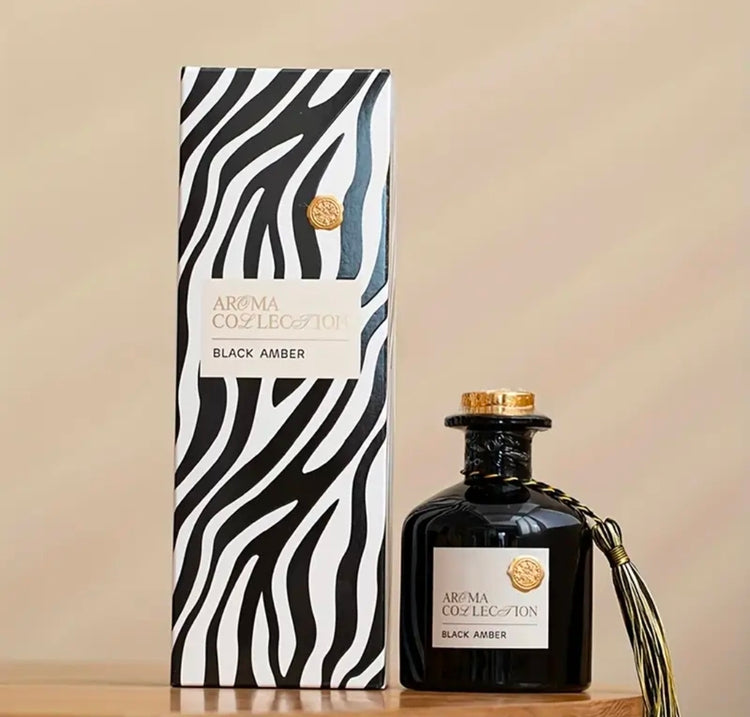 Black Amber Luxe™ on näyttävä ja intensiivinen premium-huonetuoksu, joka tekee kodista välittömästi ylellisen. Syvä musta pullo, kultaiset yksityiskohdat ja koristehapsu tuovat design-tunnelmaa, ja tyylikäs eläinkuosipakkaus viimeistelee kokonaisuuden – täydellinen myös lahjaksi.