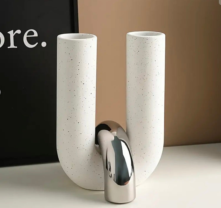 Moderni U-muotoinen Design-maljakko – Valkoinen & Kromi