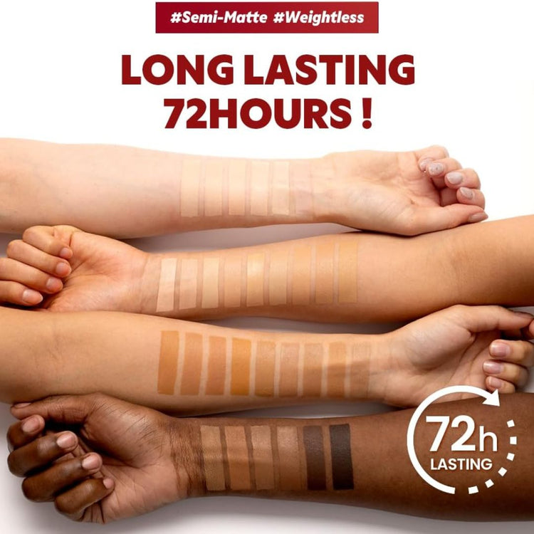 Sen hienojakoinen koostumus peittää tehokkaasti ihon epätasaisuudet, punoituksen ja tummat silmänaluset – jättäen ihon tasaisen, heleän ja virheettömän näköiseksi jopa 72 tunnin ajaksi.
