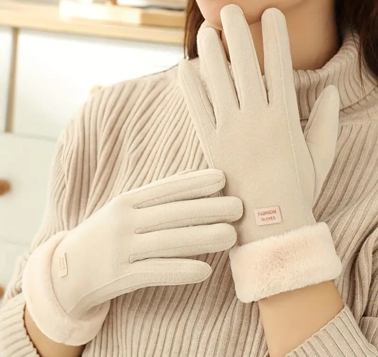 Upeat talvihanskat, joissa yhdistyvät pehmeä mokkapintainen ulkokuori, lämmin karvavuori ja kosketusnäyttöominaisuus.