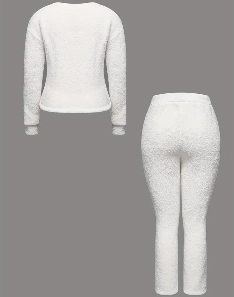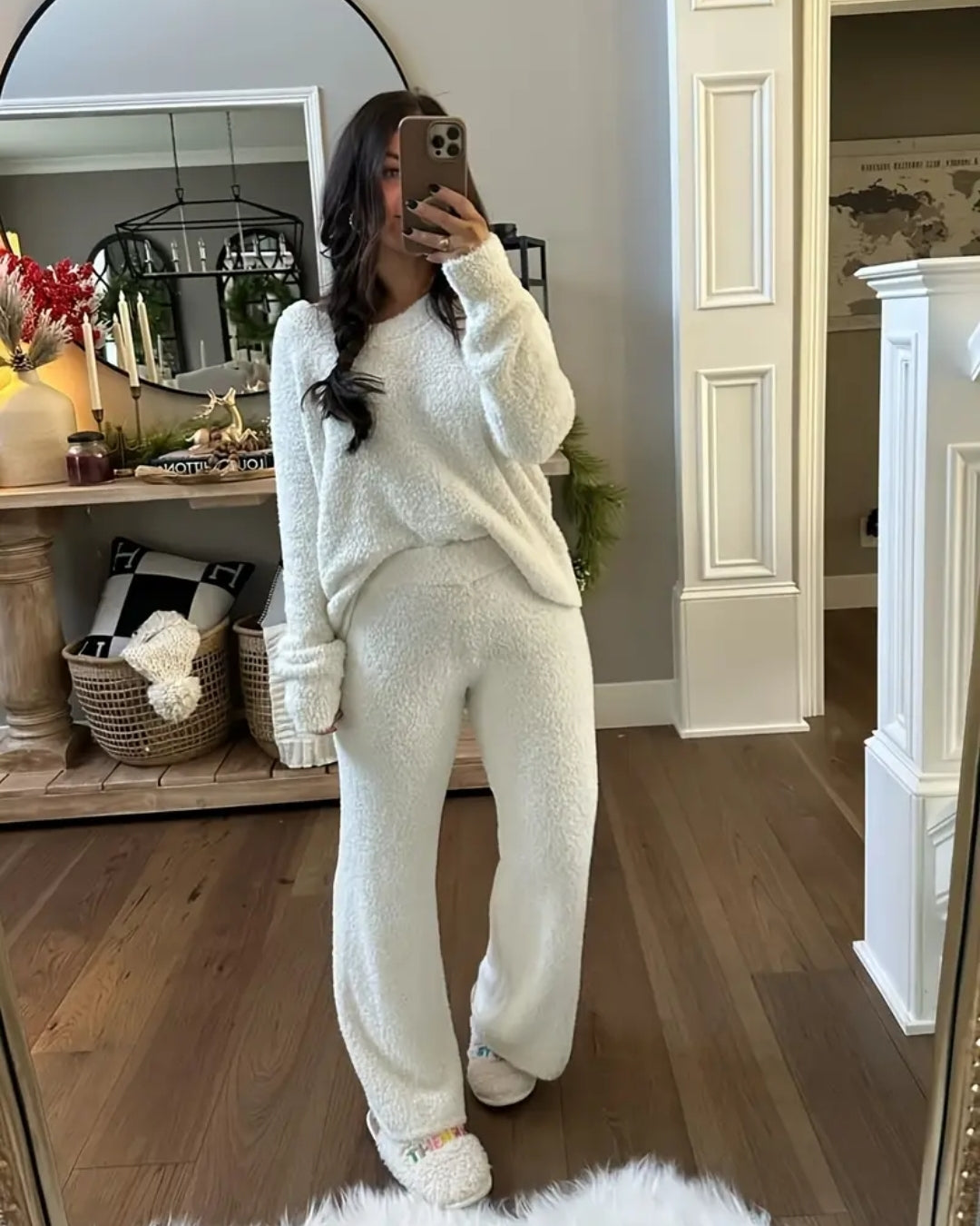 Tämä pehmeä ja ylellinen Fluffy Lounge Set on täydellinen valinta viileisiin iltoihin ja rentoihin kotihetkiin.