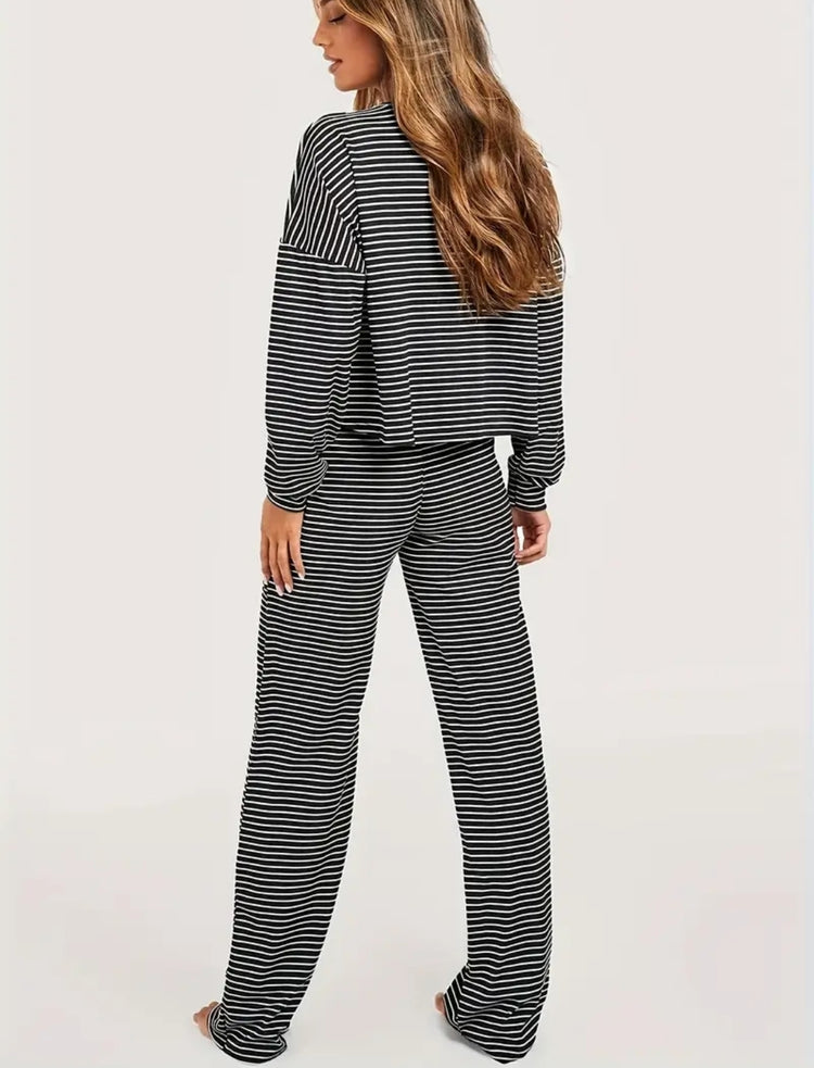 🖤 Soft Stripes Lounge Set – Black & White Comfort Edition