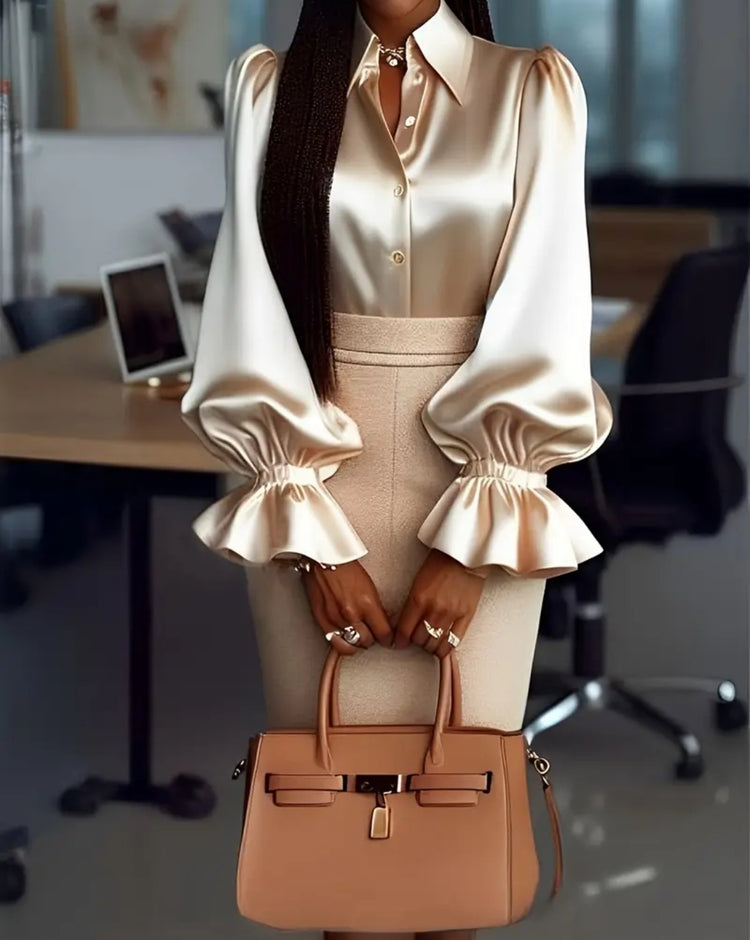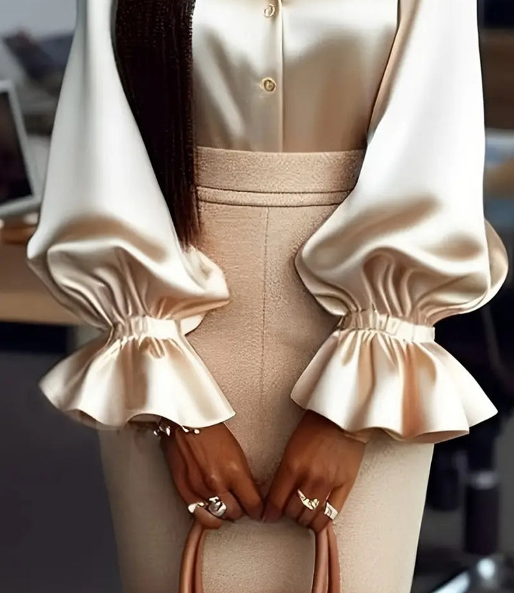 Elegantti Pearl Button Satin Blouse tuo klassista naisellisuutta arkeen ja juhlaan.