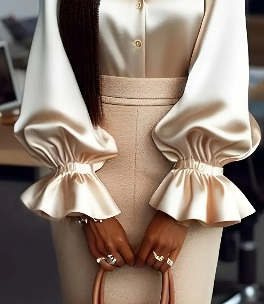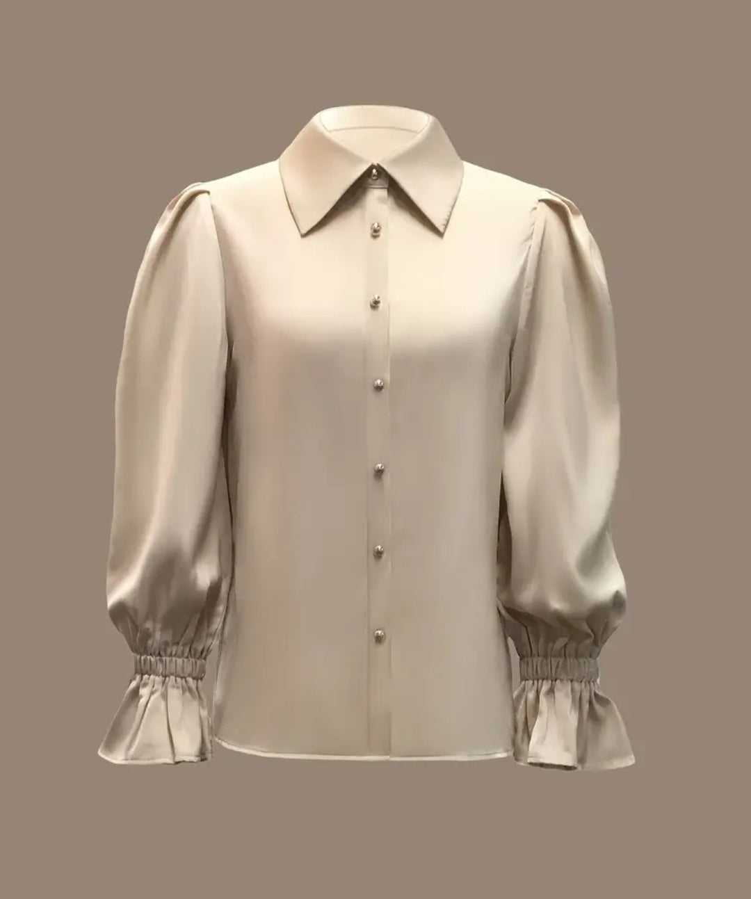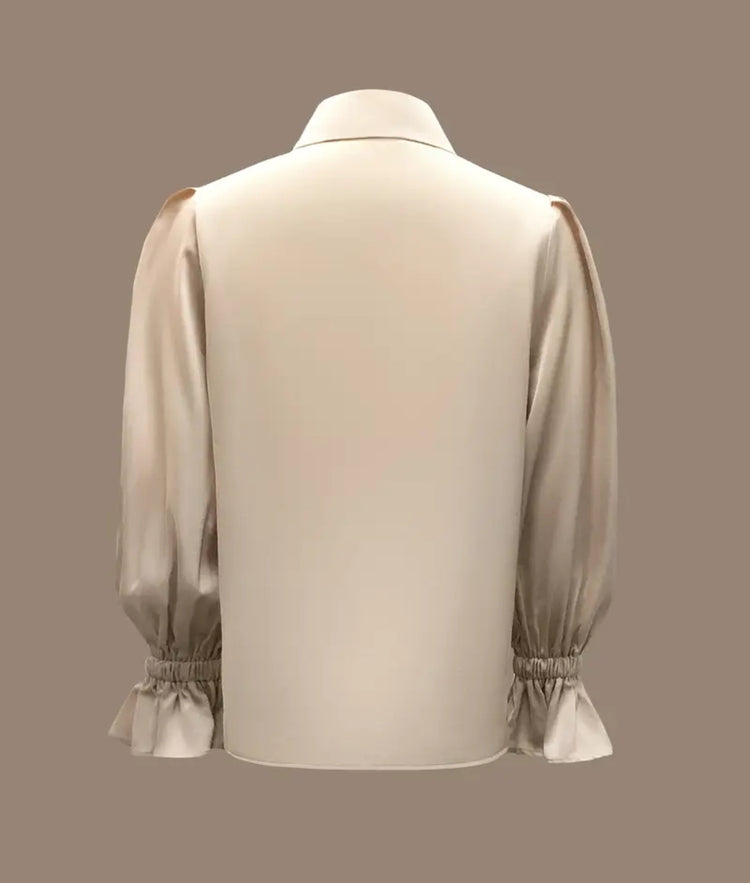 Pearl Button Satin Blouse – Champagne Beige