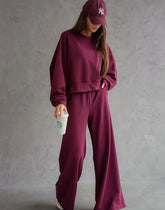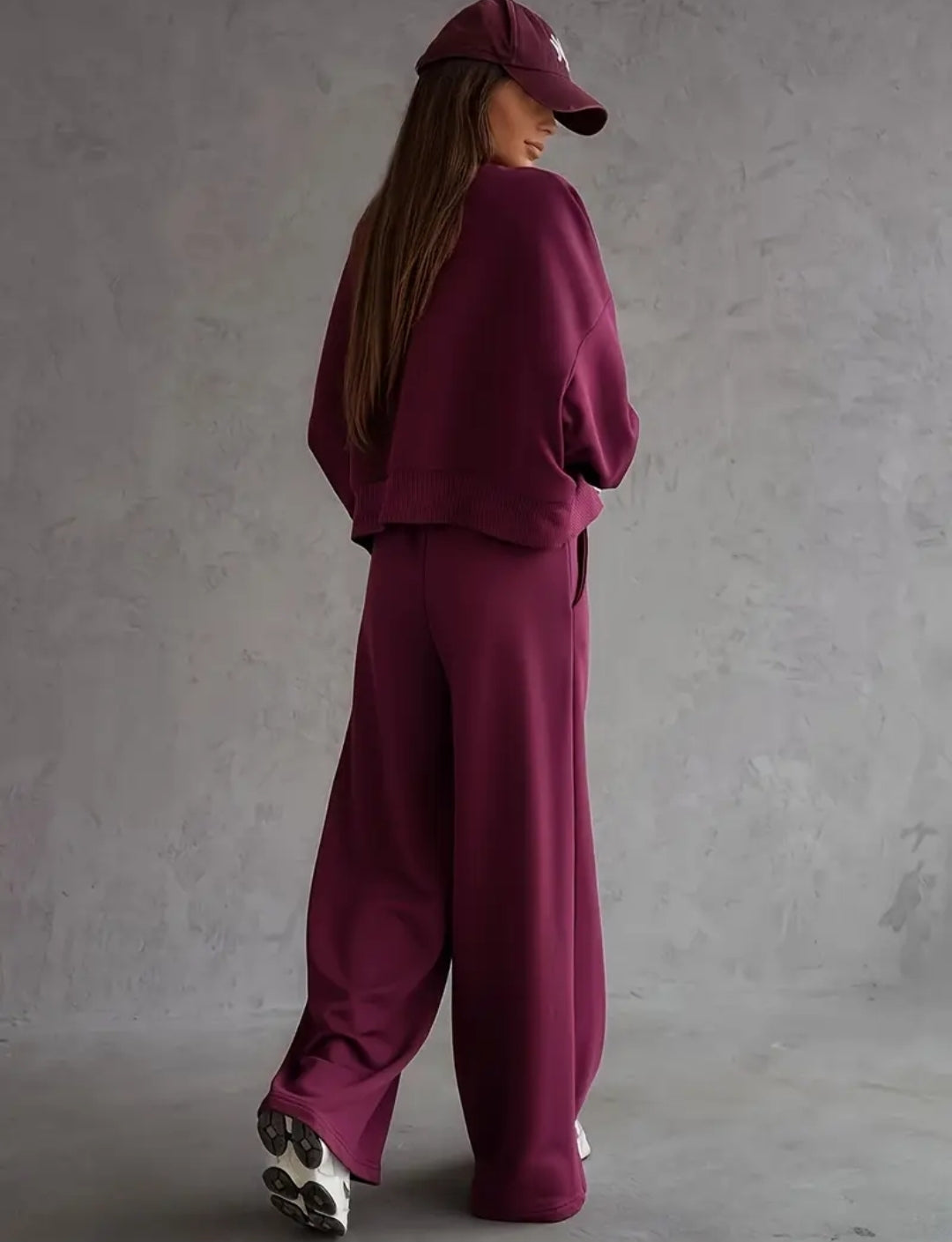 Tämä Urban Luxe Lounge Set yhdistää tyylikkyyden ja täydellisen mukavuuden yhteen upeaan kokonaisuuteen. Syvä viininpunainen sävy tekee asusta elegantin ja ajattoman – täydellinen valinta sekä kotipäiviin että rennon tyylikkäisiin city-hetkiin.