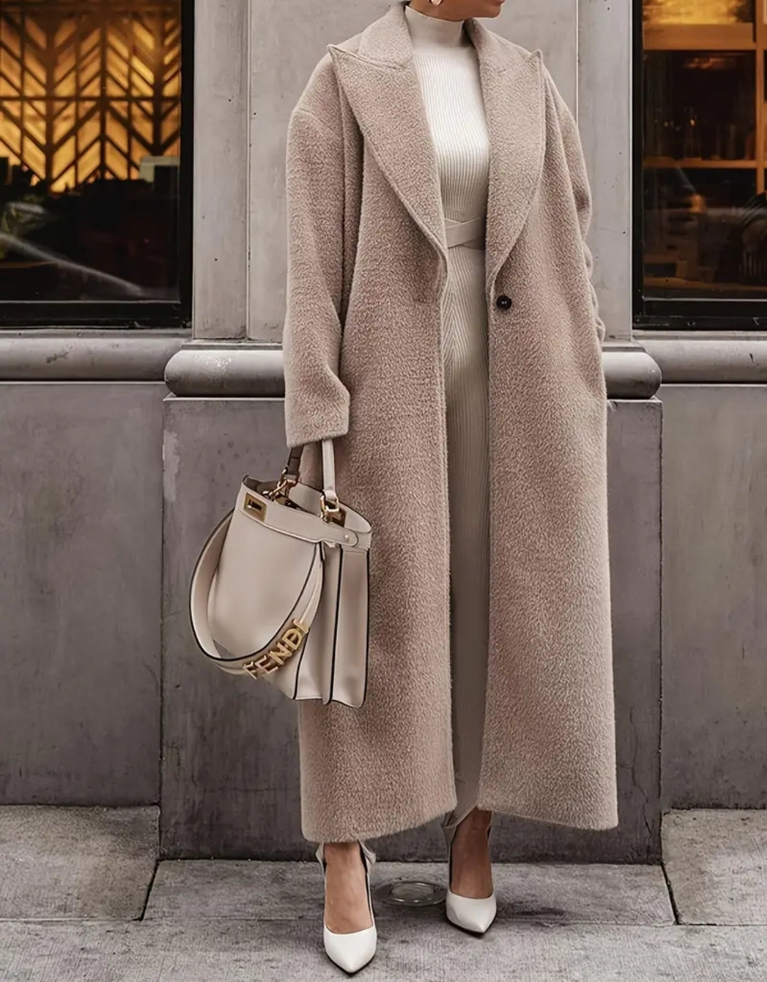 Lämpöä ja tyyliä syksyyn ja talveen. Modern Teddy Coat on muhkea ja elegantti villakangastakki, joka viimeistelee minkä tahansa asun. Sen pehmeä, karheasti teksturoitu pinta ja klassinen leikkaus luovat ajattoman lookin, joka toimii niin arjessa kuin juhlavammissakin tilanteissa.