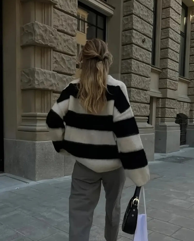 „Urban Stripes Knit“ ist ein trendiger neuer Trend, der von vielen modernen Designern auf den Markt gebracht wurde. Die übergroße Größe ist sehr groß und die Größe des Geräts ist neu.