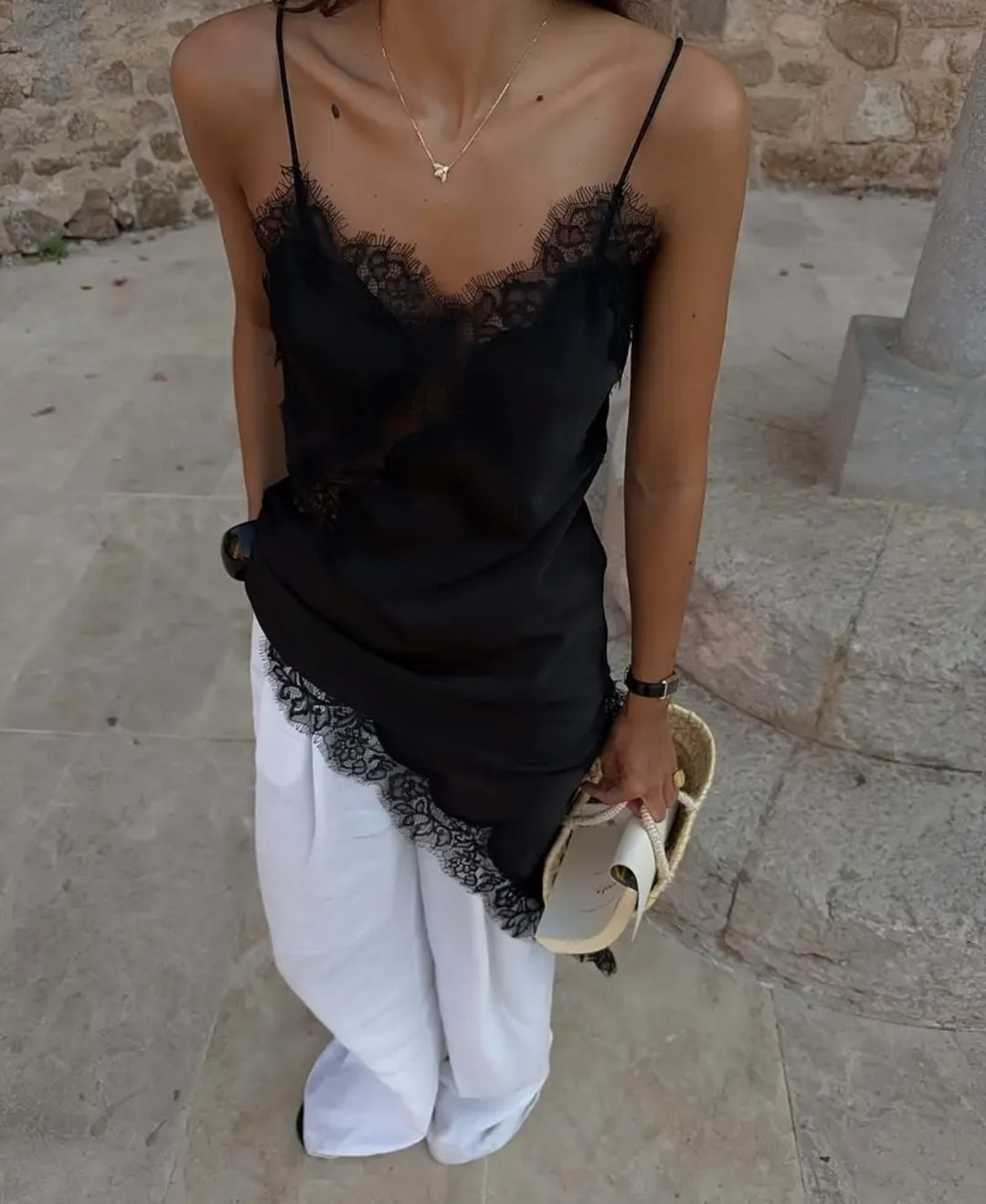 ✨ Yhdistä valkoisiin leveälahkeisiin housuihin kesäillassa