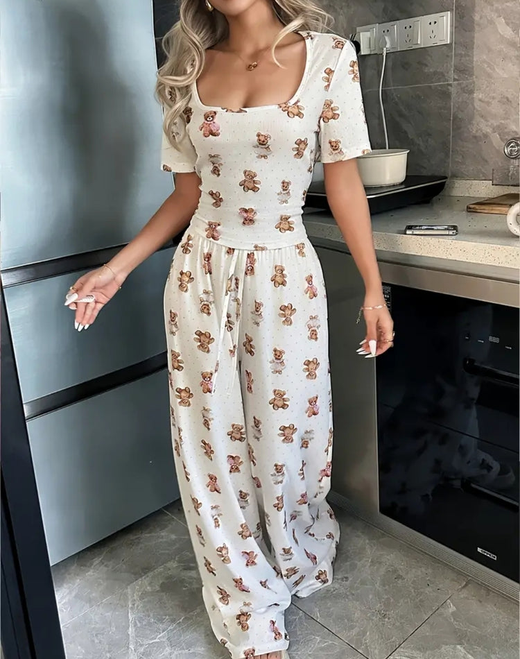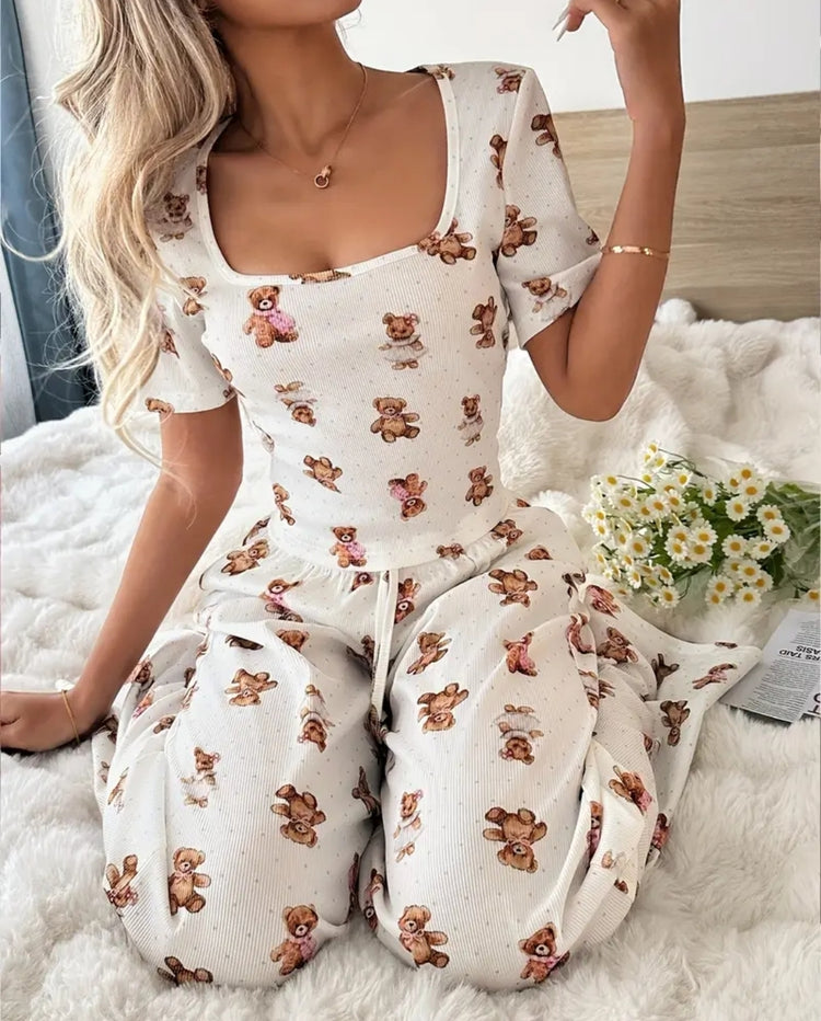 🧸 Teddy Dreams Lounge Set – nallekuvioinen oloasu