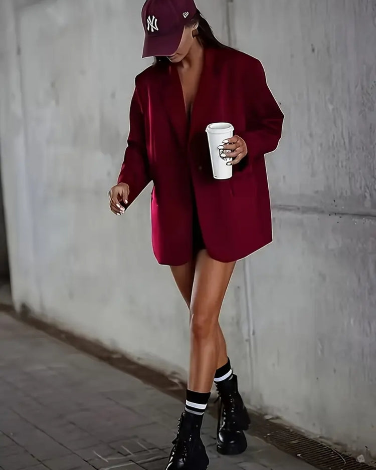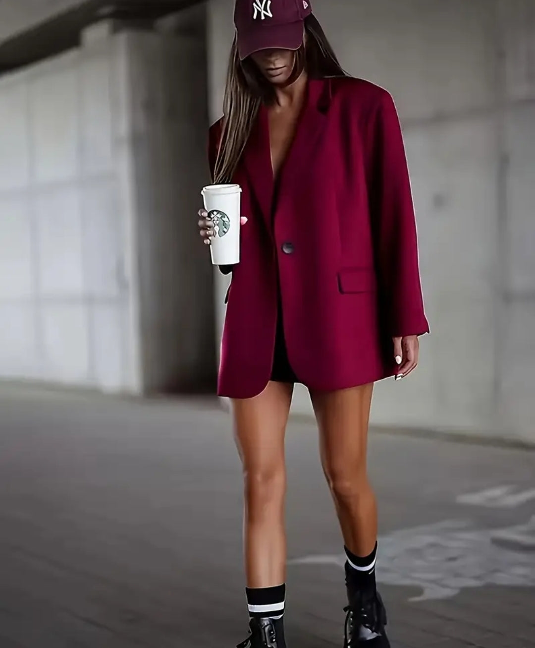 Das Blazer-Kleid von Wine Street ist eine beliebte Blei- und Trendmode, die immer beliebter wird. Als ich noch nicht wusste, dass ich sie nicht kennengelernt habe, habe ich sie noch nie zuvor gesehen. Übergroße Mitoitus-Luo-Rennon-Mutta-Elegant-Ilmeen-Yhdistä-Rohkeasti-Korkkareihin, Maihareihin-Tai-Tennareihin.