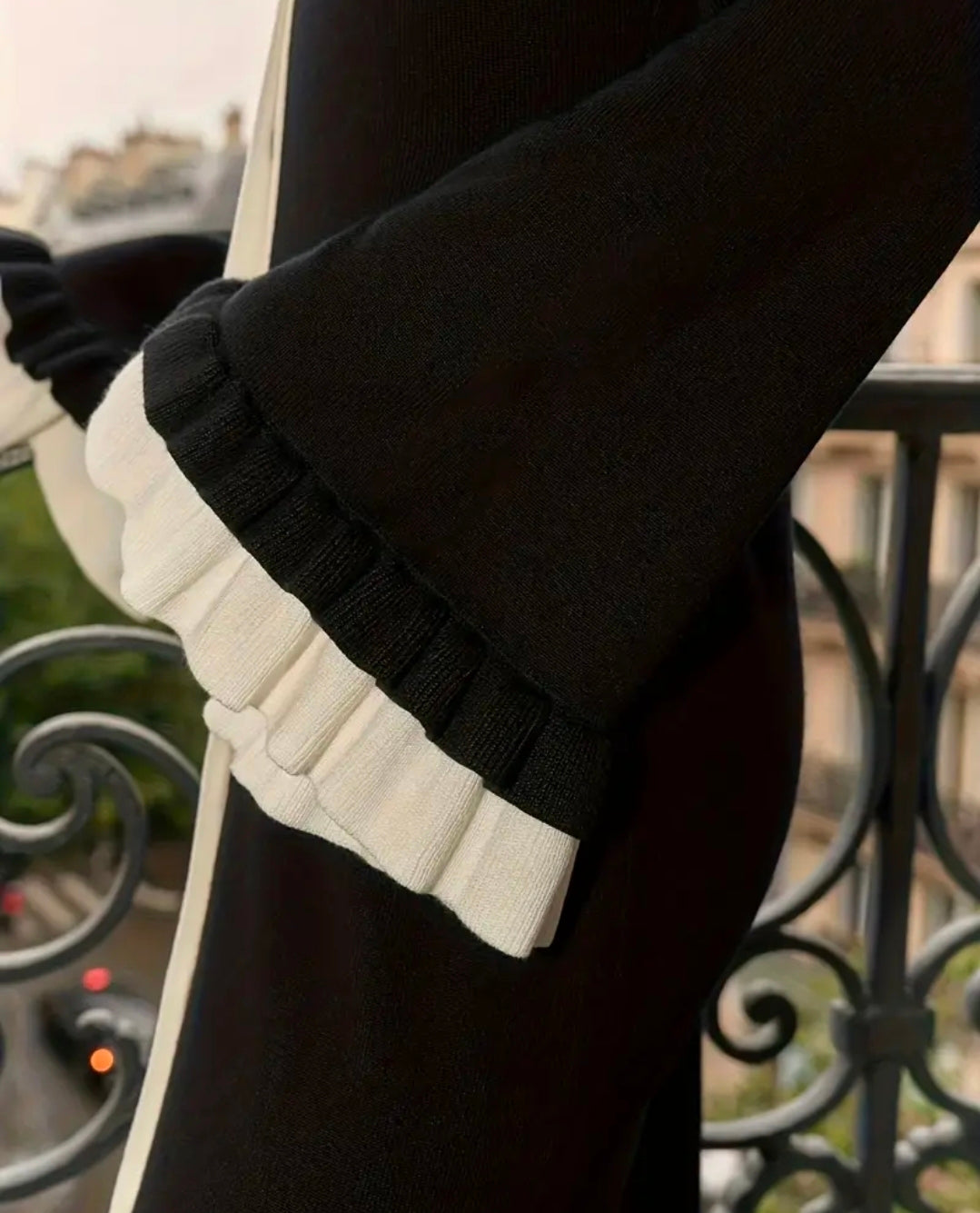 Parisienne Kontrast-Strickkleid – Maxi