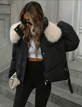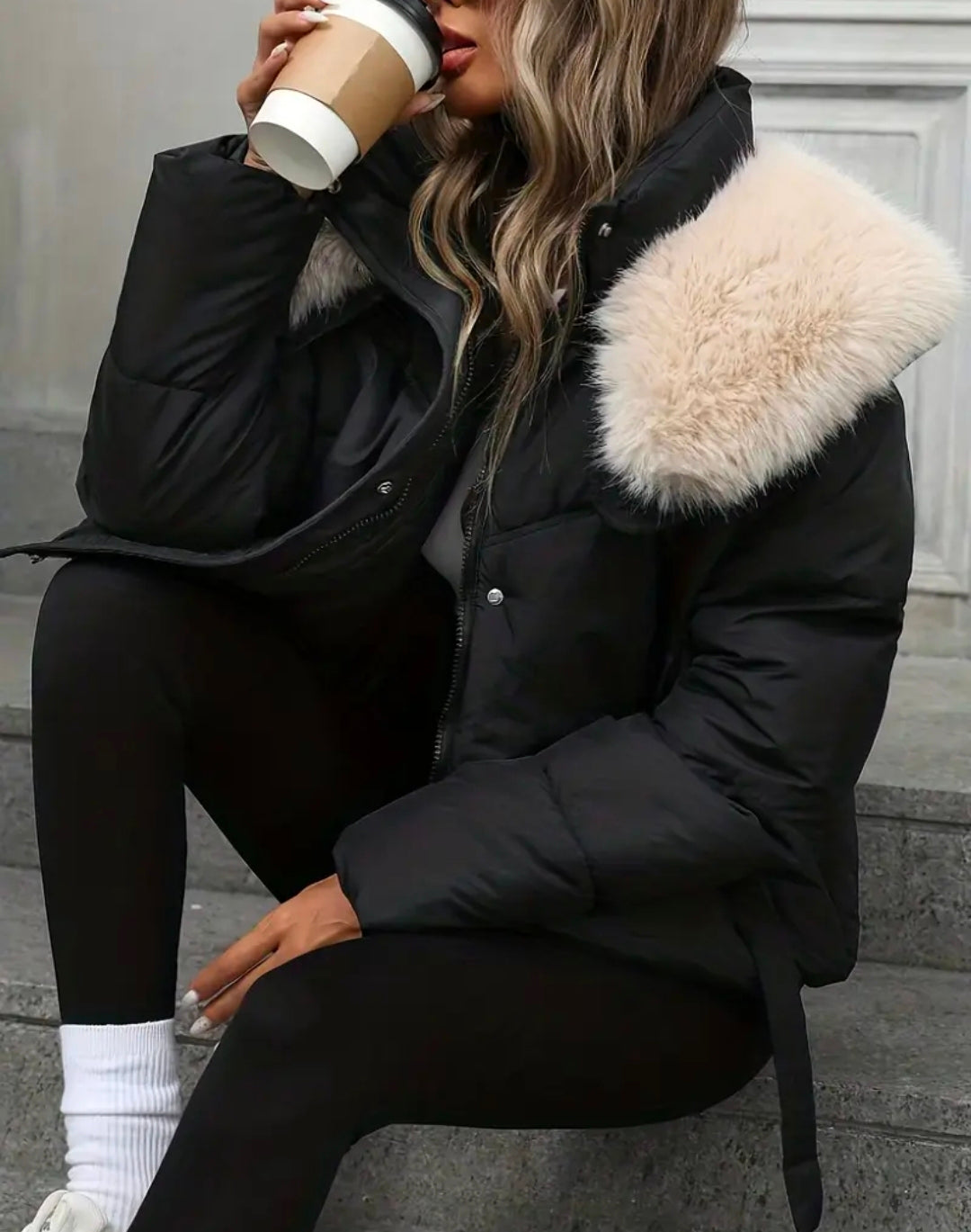 - Superpehmeä, näyttävä faux fur -kaulus (ei eläinperäisiä materiaaleja)