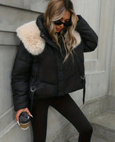 Arctic Luxe Faux Fur Puffer Jacket yhdistää muhkean, laadukkaan puffer-täytteen ja näyttävän superpehmeän tekoturkiskauluksen, joka nostaa koko lookin uudelle tasolle. Malli on moderni, lyhyt ja rento – täydellinen trendikkääseen talvipukeutumiseen.