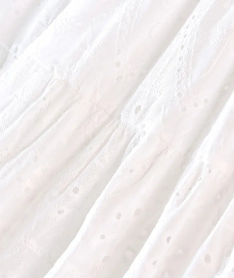 Tämä brodeerattu, ilmava hame on täydellinen valinta niin arkeen kuin kesäisiin juhlahetkiin. Korkea vyötärö, kevyt vuori ja joustava kuminauhavyötärö takaavat mukavan istuvuuden. Hameessa on kauniit pitsimäiset yksityiskohdat ja kerroksellinen leikkaus, joka tuo siihen ihastuttavaa liikettä ja volyymia.