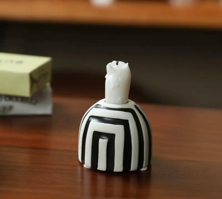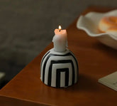 Moderni mustavalkoinen kynttiläalusta, joka tuo skandinaavista ilmettä kotiin.