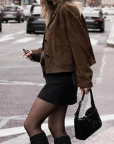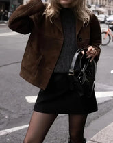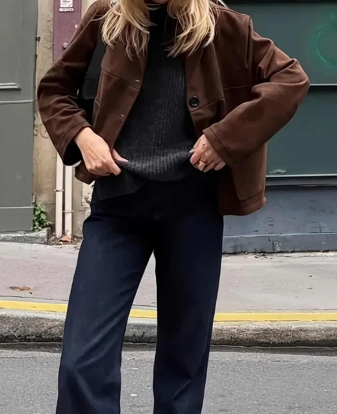 Astetta särmikkäämpi arkilook syntyy tällä Mocha Edge -strukturitakilla, joka yhdistää rouhean mokkapinnan ja minimalistisen leikkauksen. Tyylikäs laatikkomainen malli, isot taskut ja napit tekevät takista sekä käytännöllisen että visuaalisesti kiinnostavan. Täydellinen valinta kerrospukeutumiseen – yhdistä esimerkiksi pooloneuleeseen ja minihameeseen tai farkkuihin saadaksesi modernin ja ajattoman lookin.