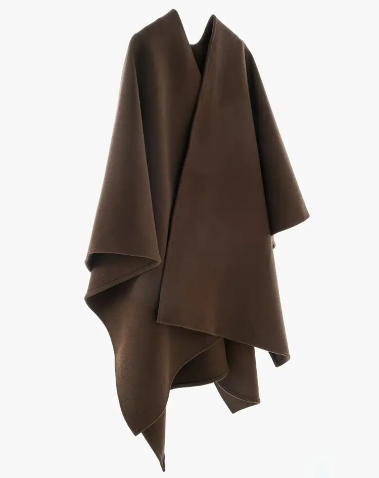 Tämä pehmeä ja laskeutuva poncho tuo asuusi ylellistä fiilistä hetkessä.