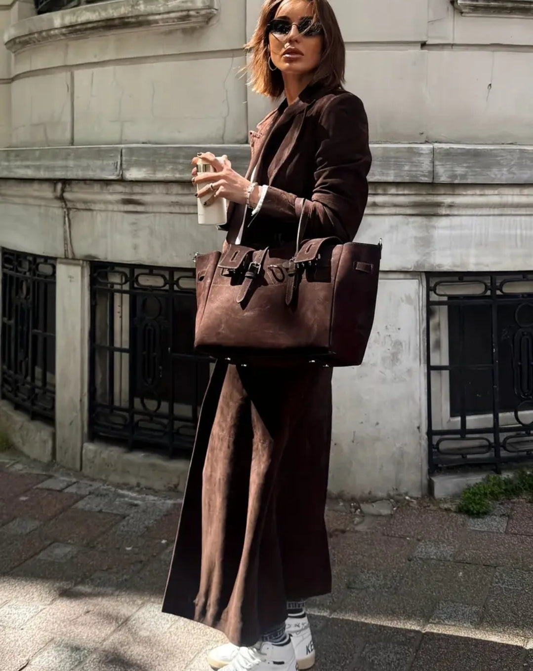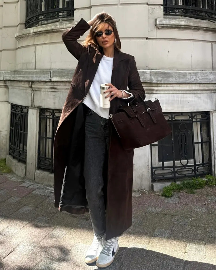 Yhdistä Urban Espresso Coat valkoiseen neuleeseen, farkkuihin ja korollisiin nilkkureihin. Lisää isot aurinkolasit ja statement-laukku – täydellinen syyslook, joka huokuu itsevarmuutta ja tyyliä.
