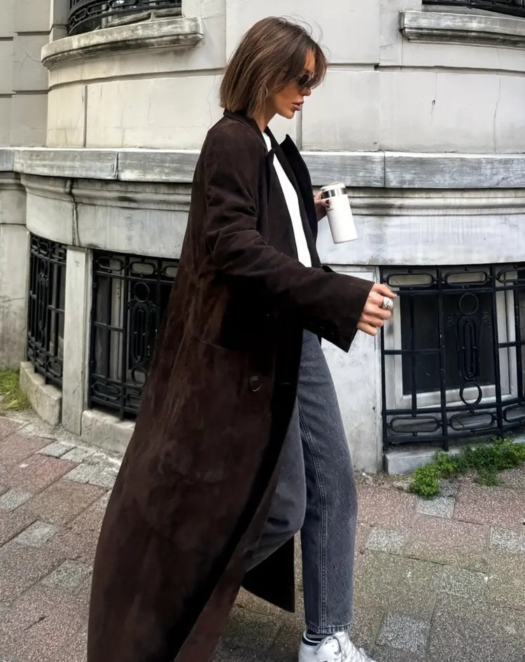 Urban Espresso Coat on täydellinen yhdistelmä rentoa eleganssia ja kaupunkiluksusta. Pitkä, pehmeästi laskeutuva mokkapintainen takki tuo lämpöä ja tyyliä viileisiin päiviin. Klassinen leikkaus ja trendikäs ruskean sävy tekevät siitä monikäyttöisen valinnan – se sopii yhtä hyvin farkkujen, neuleiden kuin mekkojen pariksi.