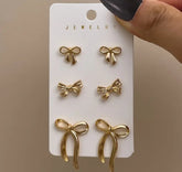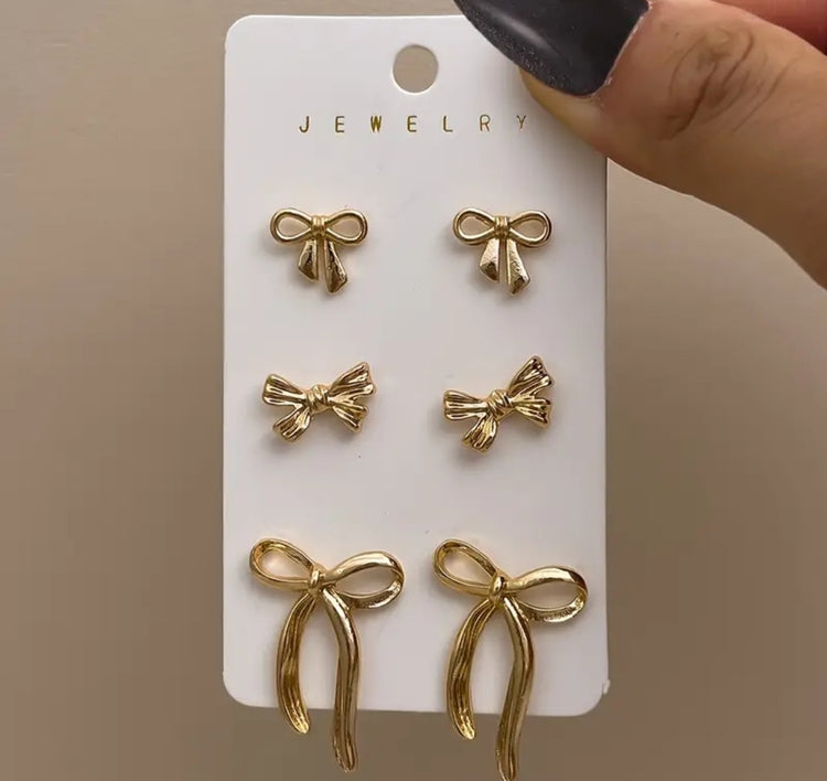 🎀 Golden Bow Trio – Kultaiset rusetti-korvakorut