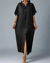 Black Relax Kaftaan Dress on ajattoman tyylikäs ja rento mekko, joka huokuu modernia minimalismia.