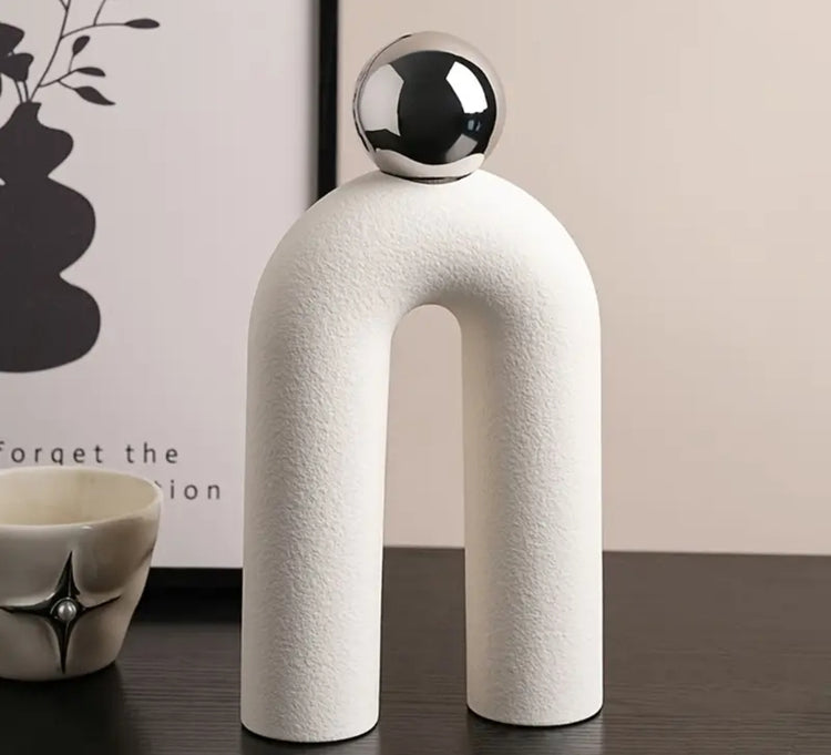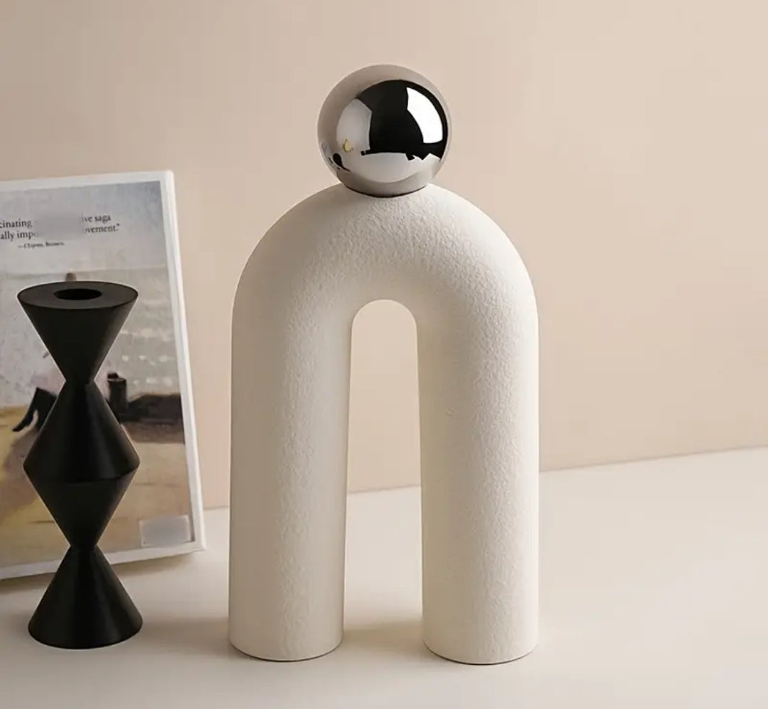 Luo kotiisi taiteellinen ja harmoninen tunnelma näyttävällä Balance Arc -koristeveistoksella. Minimalistinen kaarimuoto yhdistettynä kiiltävään metallipalloon luo upean kontrastin, joka vangitsee katseen ja viimeistelee modernin sisustuksen.