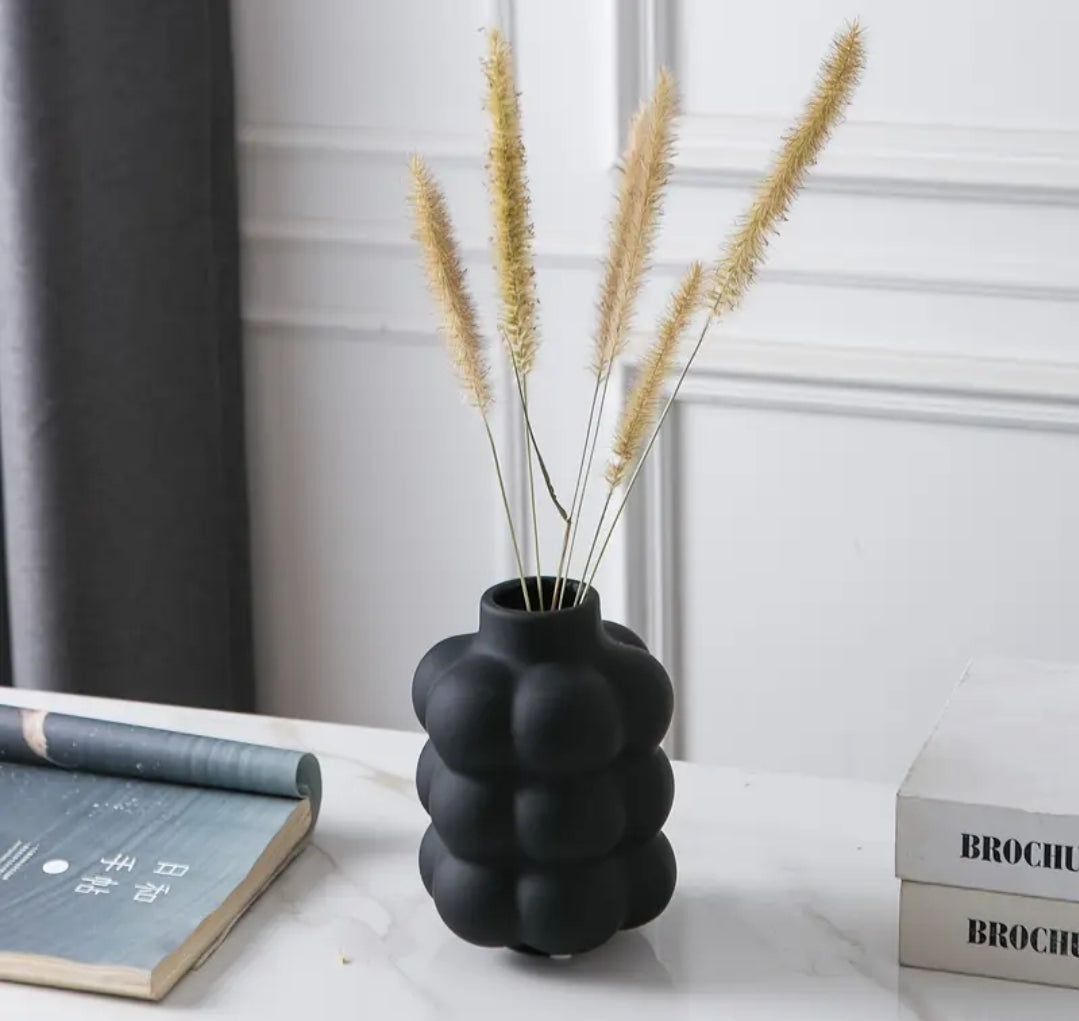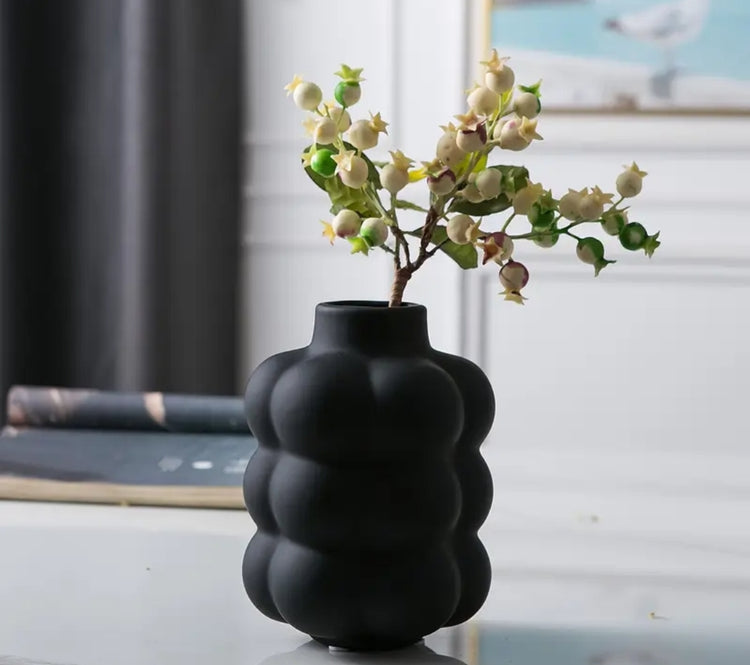 Bubble Black toimii kauniina katseenvangitsijana sellaisenaan tai täydennettynä kuivakukilla, oksilla tai koristeellisilla elementeillä. Huolellisesti käsintehty keramiikka kestää käyttöä ja tuo tilaan eleganttia tunnelmaa – täydellinen olohuoneeseen, työpöydälle tai lipaston päälle.