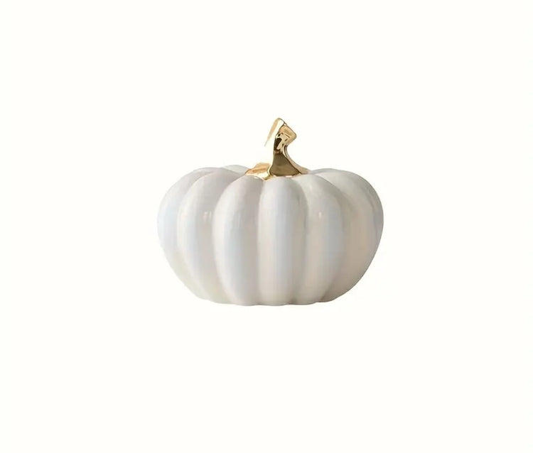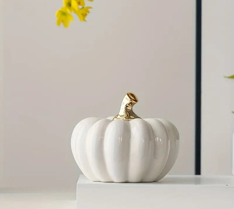 Golden Stem Pumpkin Bowl – Valkoinen keraaminen kurpitsakoriste ✨🎃