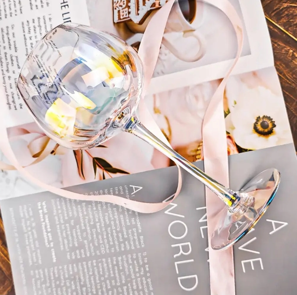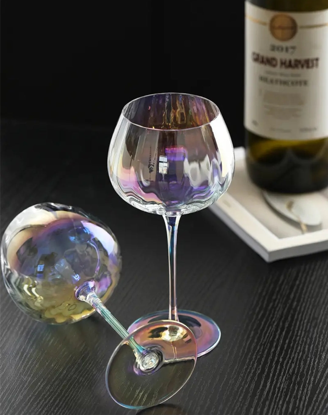 Prism Glow Wine Glass -viinilasit tuovat pöytään ripauksen luksusta ja väriä. Käsinpuhalletusta kristallimateriaalista valmistetut lasit heijastavat kauniisti valoa ja luovat ainutlaatuisen prismaattisen hohteen jokaisella siemauksella. Tyylikäs kurpitsanmuotoinen muotoilu yhdistyy moderniin väriefektiin, mikä tekee laseista täydellisen valinnan niin juhlapöytään, illanistujaisiin kuin lahjaksi läheiselle.