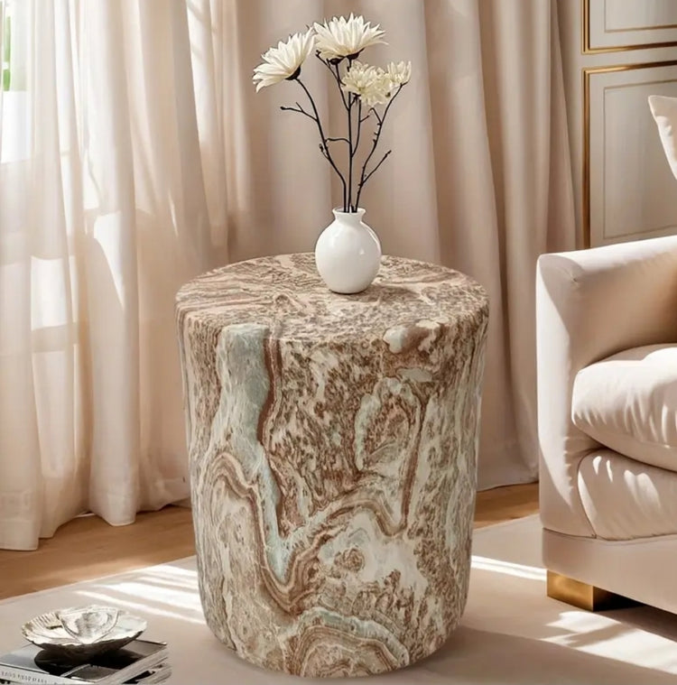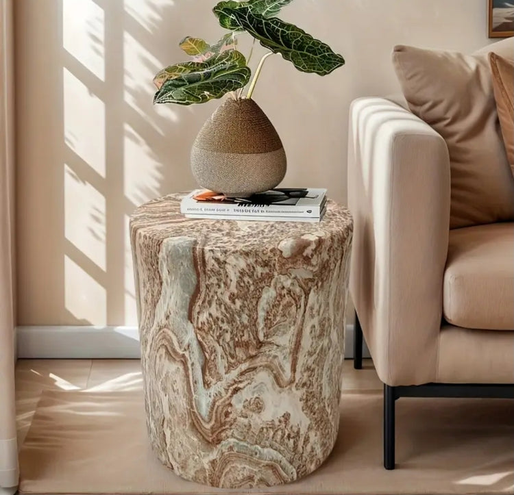 Marble Flow Side Table on tyylikäs marmorikuvioinen pikkupöytä, joka yhdistää minimalistisen muotoilun ja retrohenkisen ilmeen. Kompakti koko tekee siitä monikäyttöisen sisustuselementin olohuoneeseen, makuuhuoneeseen, toimistoon tai vaikka kahvipöydäksi.