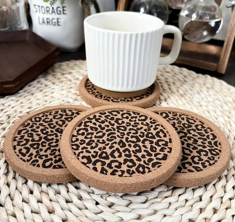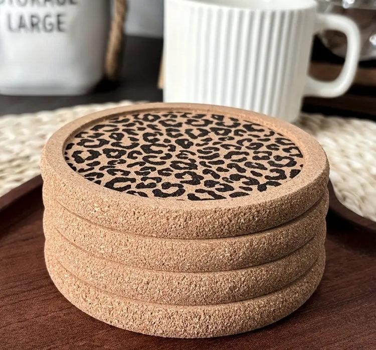 Leopard Luxe Korkkiset Lasinaluset – 4 kpl Setti