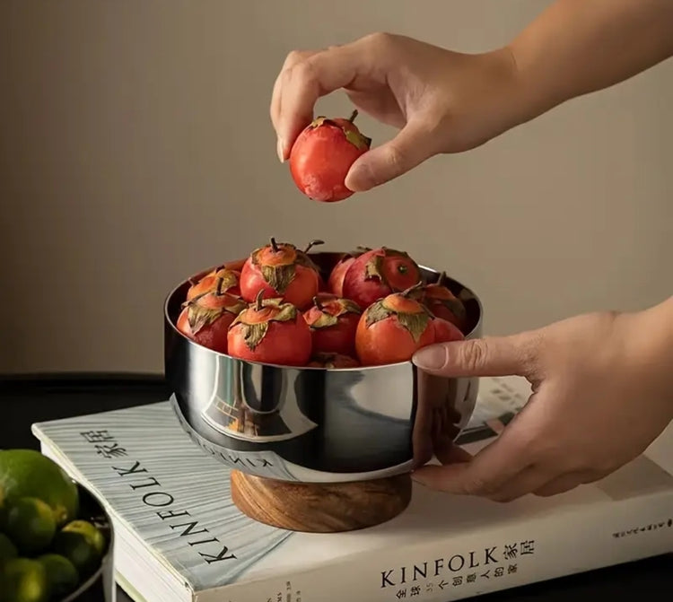 Nordic Base Bowl yhdistää minimalistisen muotoilun och luonnonmaterialien harmonian. Kiiltävä metallipinta ja lämmin puujalka luovat ajattoman kontrastin, joka sopii täydellisesti skandinaaviseen sisustukseen. Kulho toimii monikäyttöisenä tarjoiluastiana, säilytyskulhona tai koriste-esineenä niin keittiössä kuin olohuoneessakin. Mått: halkaisija 16 cm, korkeus 10,5 cm.