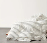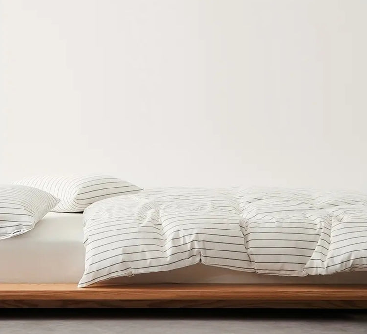Nordic Stripe -pussilakana on ajattoman raikas valinta makuuhuoneeseen. Valkoisella pohjalla kulkevat ohuet raidat tuovat skandinaavista selkeyttä ja tyylikästä ilmettä, joka sopii sekä moderniin että klassisempaan sisustukseen.
