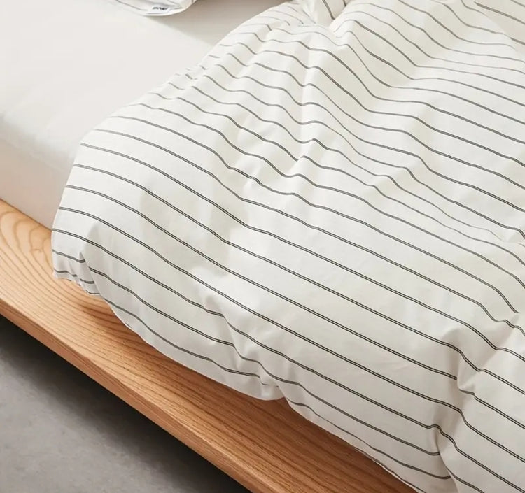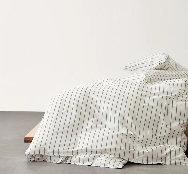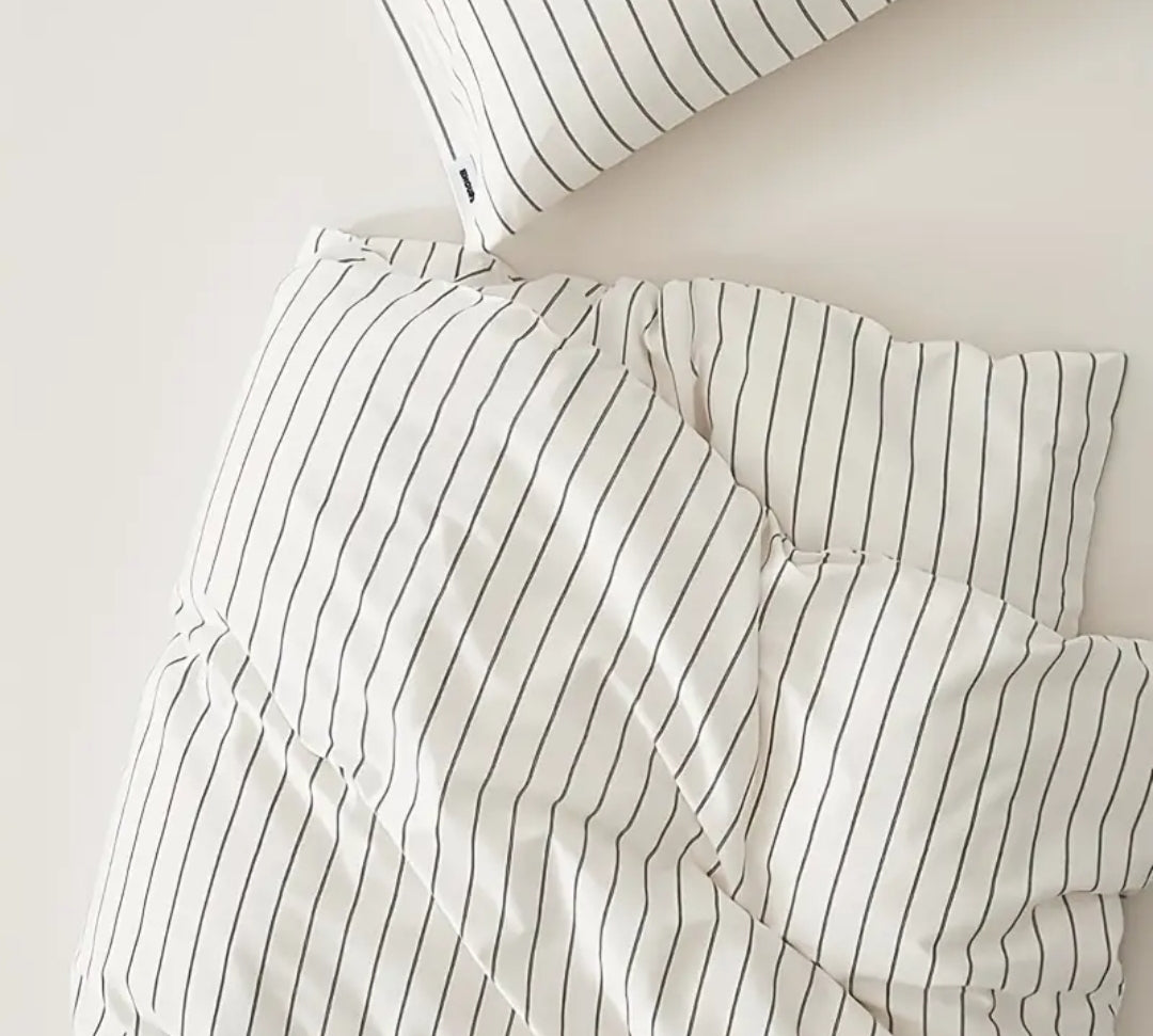 Koko 150x200 cm sopii hyvin yhden hengen peittoon, ja kangas on helppo huoltaa konepesussa. Nordic Stripe -pussilakana yhdistää käytännöllisyyden, laadun ja minimalistisen muotoilun – täydellinen makuuhuoneen piristys.