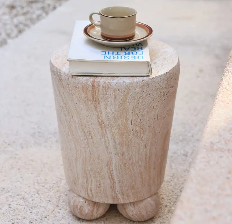 Pebble Luxe -sivupöytä yhdistää luonnon inspiroiman estetiikan ja modernin muotoilun. Kompaktin kokonsa ansiosta tämä marmoria jäljittelevä pöytä sopii täydellisesti pieneen tilaan, kuten makuuhuoneeseen, olohuoneeseen tai kahvilatyyppiseen sisustukseen. Neljä pyöreää “dumpling”-jalkaa antavat sille uniikin ilmeen ja tukevan rakenteen. Valmistettu kestävästä magnesiumoksidista, joka tekee siitä pitkäikäisen ja kevyen siirtää. Ajattoman kaunis valinta moderniin, minimalistiseen tai wabi-sabi -henkiseen kotiin.