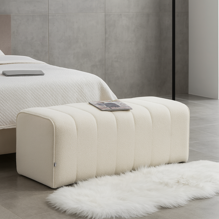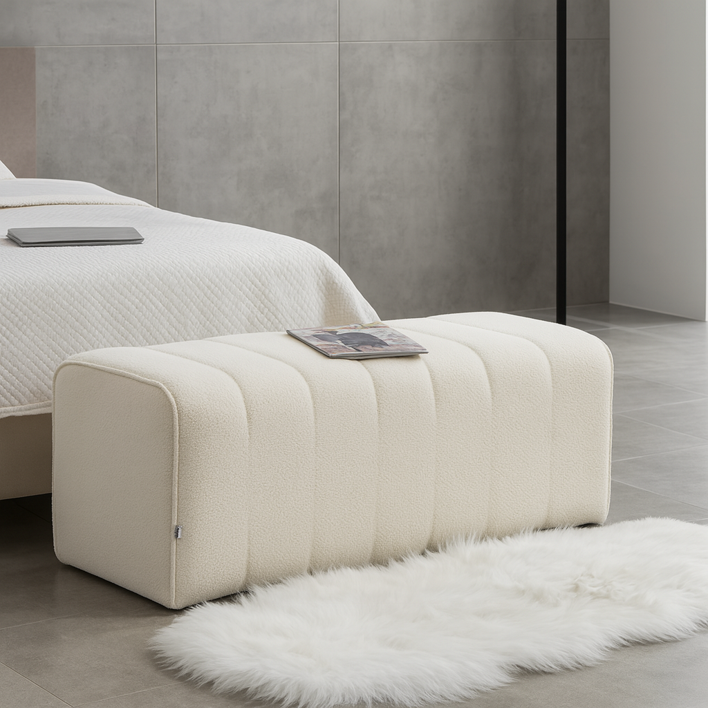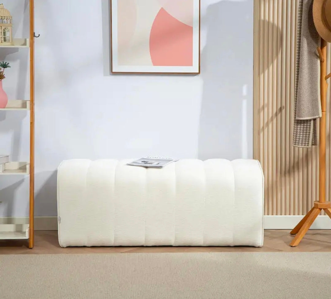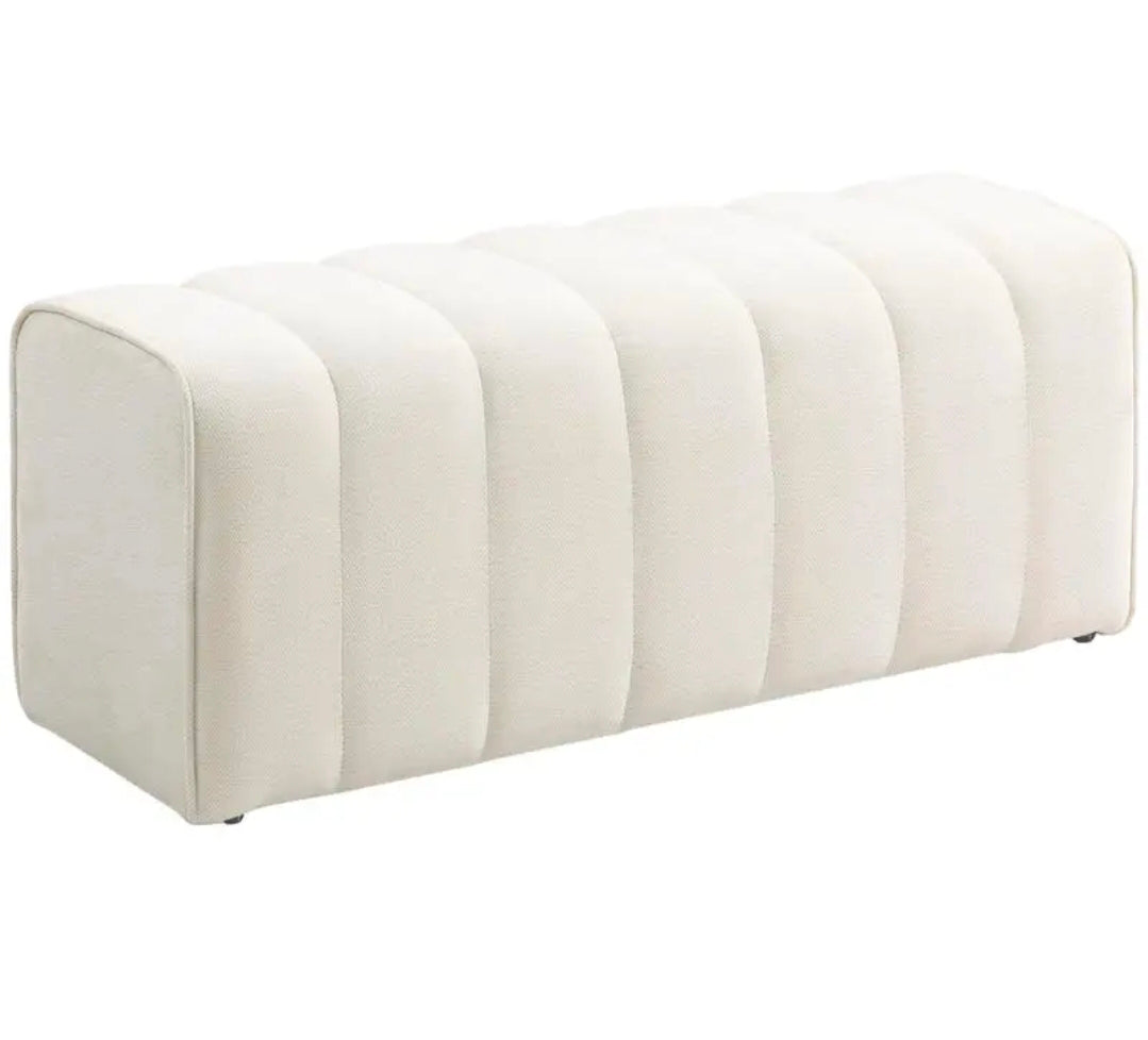 Soft Curve Bench – 110 cm | Beige Linen Look