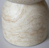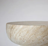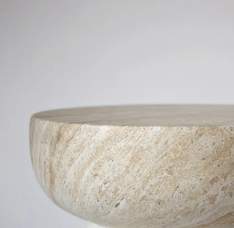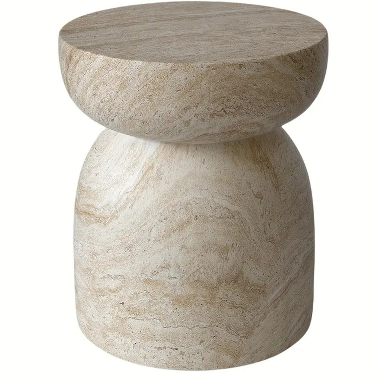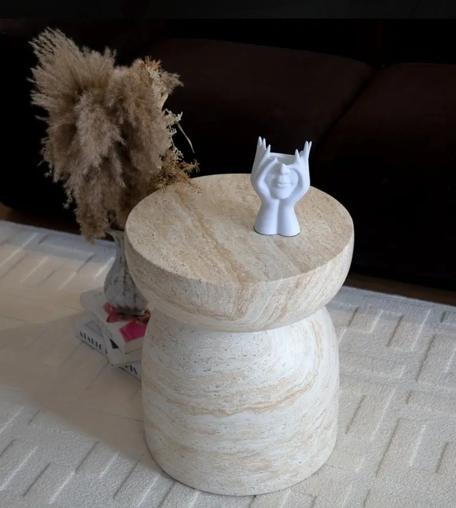 Stone Aura -sivupöytä on tyylikäs ja ajaton valinta, joka yhdistää luonnollisen kivimäisen pinnan ja modernin muotoilun. Kompakti koko (40 cm leveä, 46 cm korkea) tekee siitä täydellisen olohuoneen, makuuhuoneen tai aulan katseenvangitsijan. Monikäyttöinen pöytä toimii niin yöpöytänä, sohvapöytänä kuin näyttävänä sisustuselementtinä. Sen pehmeästi pyöristetty muoto ja vaalean luonnonsävyn viimeistely tuovat tilaan harmoniaa ja skandinaavista eleganssia.