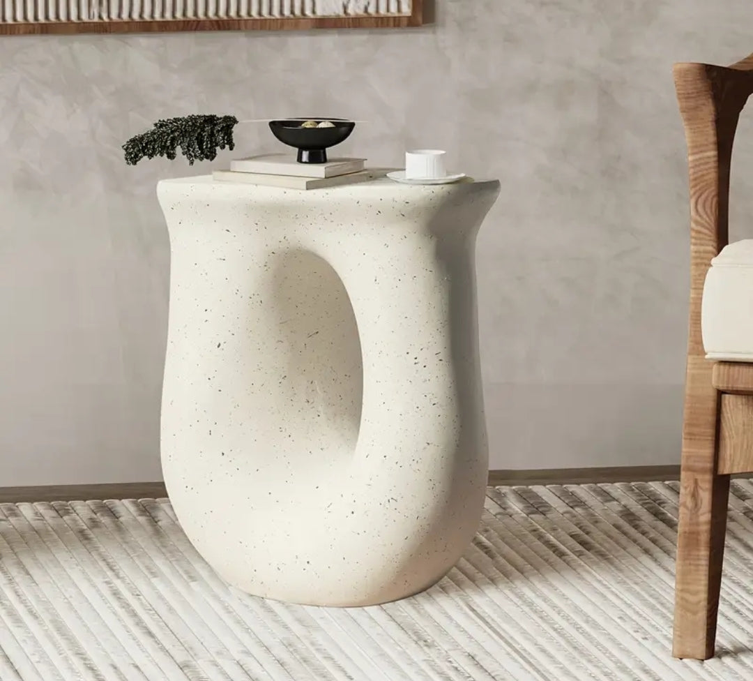 Urban U-Concrete Table on moderni ja näyttävä sivupöytä, joka yhdistää minimalistisen muotoilun ja kestävän materiaalin. Sen U-muotoinen veistoksellinen design tekee pöydästä todellisen katseenvangitsijan, joka toimii yhtä hyvin olohuoneessa, makuuhuoneessa kuin terassin sisustuksessa.