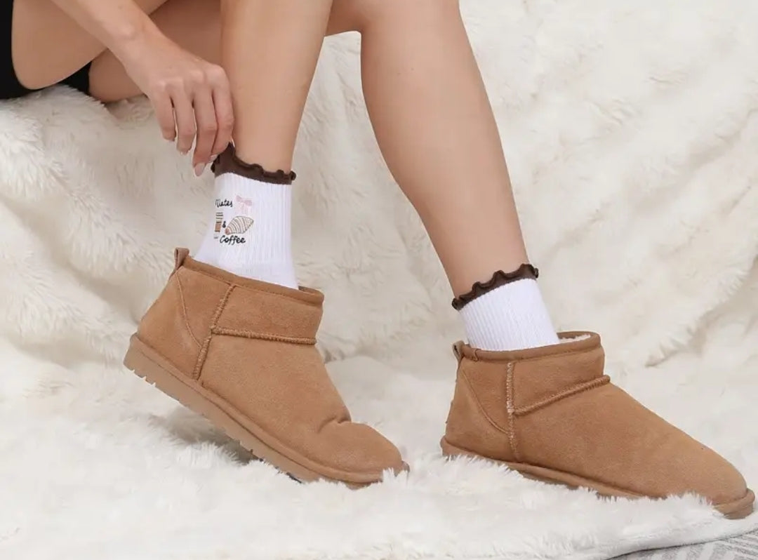 Pilates & Coffee -röyhelösukat yhdistävät mukavuuden ja hauskan designin! Pehmeästä 100 % puuvillasta valmistetut sukat sopivat täydellisesti niin pilates- ja joogaharjoituksiin kuin rentoon kotilookiin. Pohjassa olevat liukuesteet tuovat turvaa liikkeeseen, ja suloiset röyhelöreunat tuovat tyylikästä ilmettä asuun. Sukissa oleva kahvi- ja pilatesaiheinen kuviointi tekee niistä trendikkään lahjaidean liikunnasta ja arjen hemmotteluhetkistä nauttivalle.